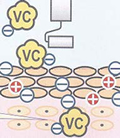 マイナスの電極を顔の皮膚にあて、プラスの電極を手に持って電流を流すと、マイナスとマイナスの電極からの反発力によってイオン化した有用成分(美容液)を肌の奥へと浸透し、さまざまなトラブルに応えます。