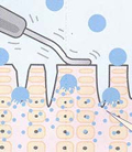 天然素材(海水海綿)の針状の部分が皮膚に刺さると、皮膚はそれを異物と察知し、外へ押し出そうとします。その反応により、アツイ角質がボロボロと剥離し、新しい秘史細胞とコラーゲンが生成されむき卵のようなツルツルお肌へ。