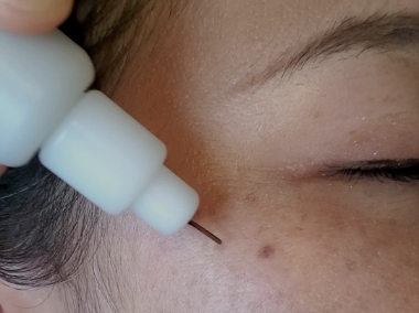 ペン型のシミケア専用の低周波機器で、 50度程度の低周波を皮膚表面の角質層のみに作用させ、お肌のターンオーバーを促し、メラニンを含む角質を浮き上がらせて排出します。